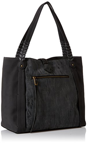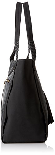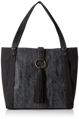 Faux-leather tote bag featuring tassel overlay and whipstitched trims