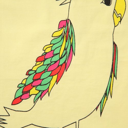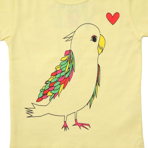 - Feature : Premium cotton 100% Tee-shirt. A bird in love. / Illustrations are created, layer by layer, using hand-applied silk screens. / Shoulder snaps (only for 6-12M and 12-24M sizes) make it easier to change. / Made with 100% cotton for the most comfort. Even tags are made from cotton. Machine wash. / Designed in Japan and made in Indonnesia. Hand printed.