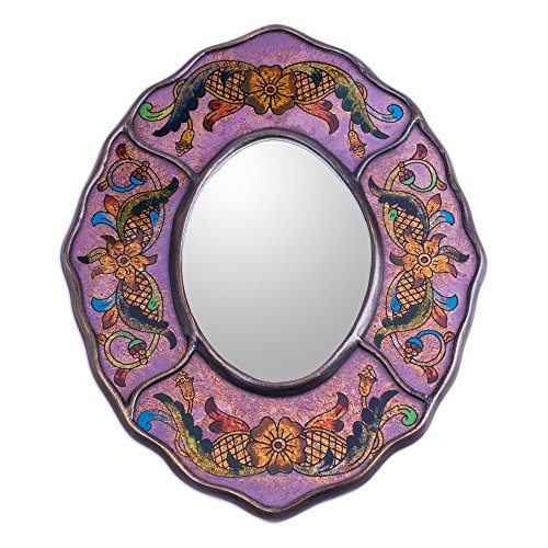 NOVICA "Lilac Colonial Wreath" Reverse Painted Glass Wall Mirror