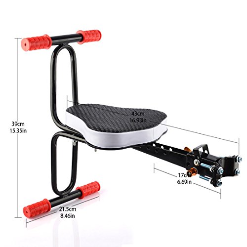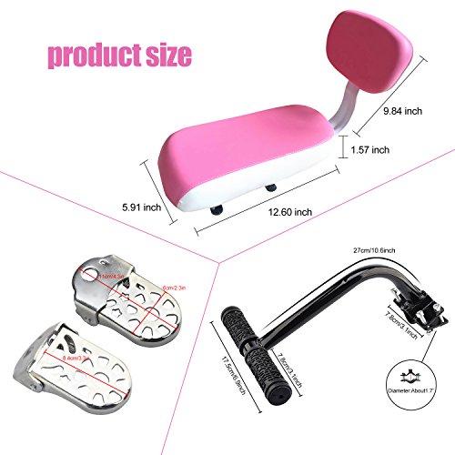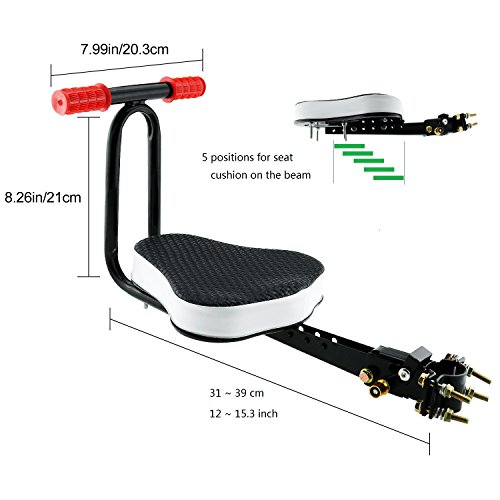 Studio : VEY Publisher : VEY Binding : Misc. Product Description Front Child Bike Seat When it comes to family biking outings as your toddler is still unable to cycle by themselves, it is important to engage them in this type of activity from a young age. Here is our VEY Front Mount Child Bicycle Seat, designed for your baby to biking with you and your family together and enjoy amazing time during their childhood. If you want to give your toddler a rider's-eye view of the road, the VEY Front Bicycle child seat lets you do it in style. Specifications: Color: Black Material: Metal Bearing: 60kg Suitable age: 2.5-7 Years old Product Size: 38*20*23cm Product Weight:1350g Package Dimensions: 40*15*6cm Packing: Bubble Bag Package Content: 1 x Child Bike Seat The installation of the fixed seat stem position width in 3 cm-4.2 cm. If your bike seat post diameter is less than 3 cm, please add a rubber cushion inside the mount circle to make it sturdy. Child Rear Bike Seat Features: 1.Thick sponge provide comfortable feeling. 2.PU fabric can be cleaned more easily. 3.Easy to install on standard Back Seat and universal for most of bike. 4.The wide padded seat and backrest ensures a comfortable riding position.Armrest Size: About 8.66x7.48inch[22x19cm]. Suitable Armrest Install Diameter: 1-1.25inch[25.4mm-31.8mm] Cushion Size: 32*15*4cm / 12.5*5.9*1.6inch. Feetrests Size: About 4.41x2.36inch[11.2x6cm]. 0