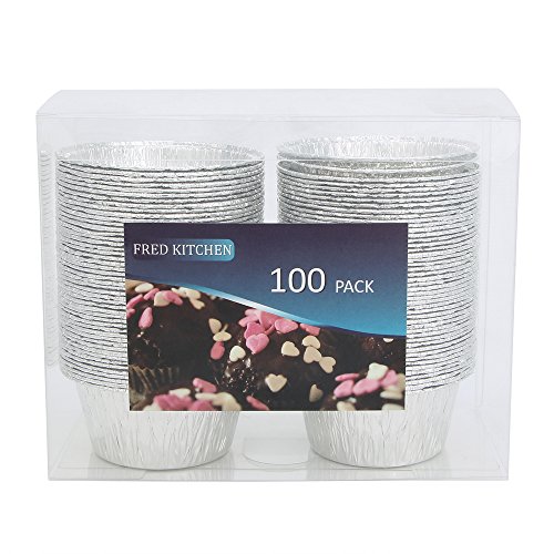 FredPack 100Pcs Aluminum Foil Ramekins Cupcake Liners Disposable Baking Cups Tin Foil Pans Cups (Pack Of 100)