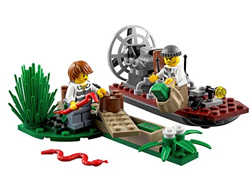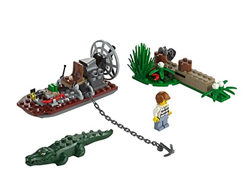 It's business as usual at the high-tech Swamp Police Station, when crash.! "Sound the alarm!" The crooks have carried out a daring jailbreak, by pulling the jailhouse door clean from its frame using a chain attached to their high-powered swamp boat! Mobilize all police units, deploy the 4x4 off-roader and jump aboard the powerful patrol boat. It's time to catch those crooks and put them back behind bars where they belong! Includes 6 minifigures with assorted accessories: 2 crooks and 4 police officers.