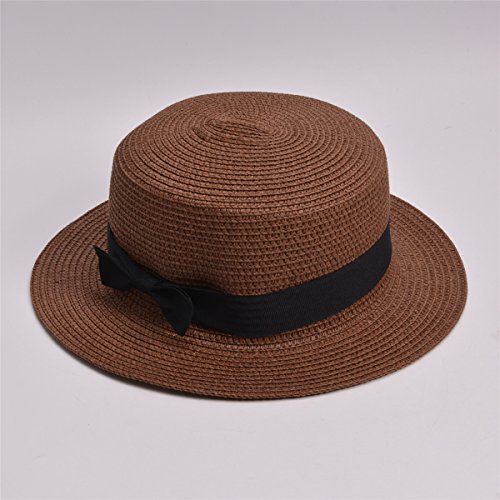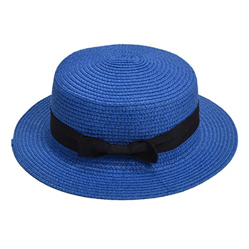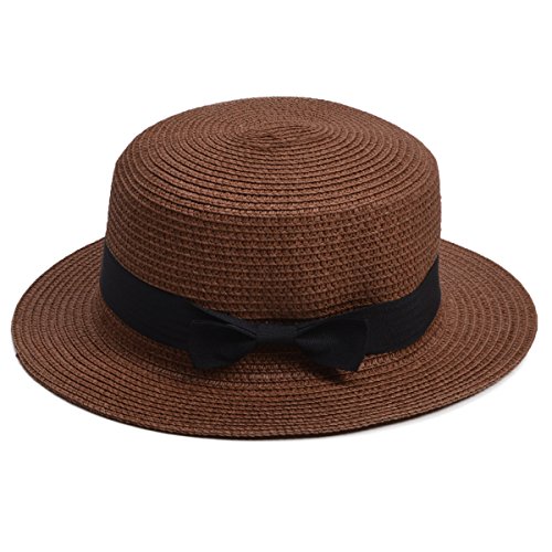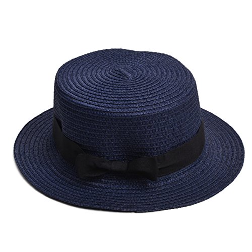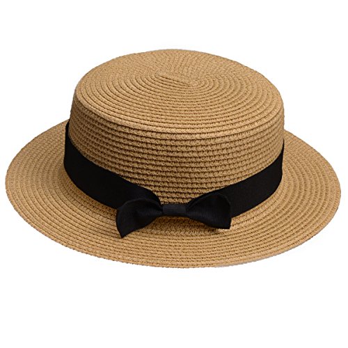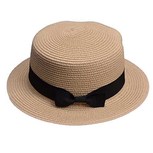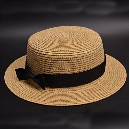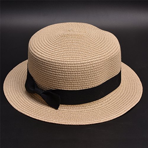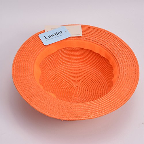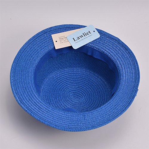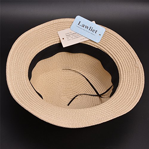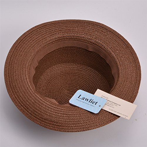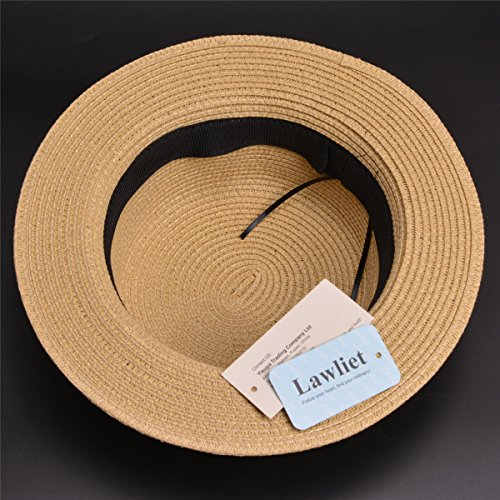Lawliet Womens Straw Boater Hat Fedora Panama Flat Top Ribbon Summer A456