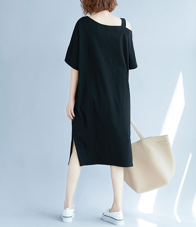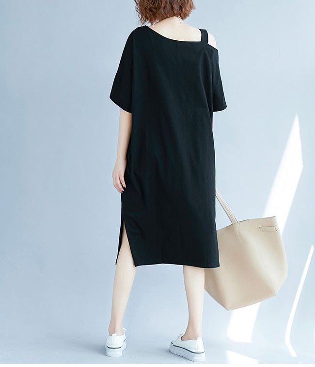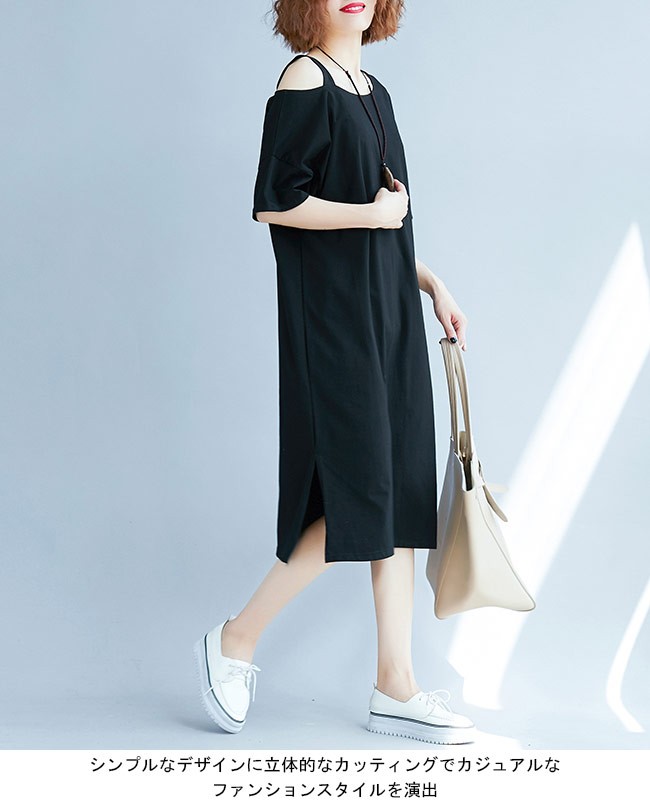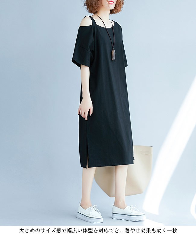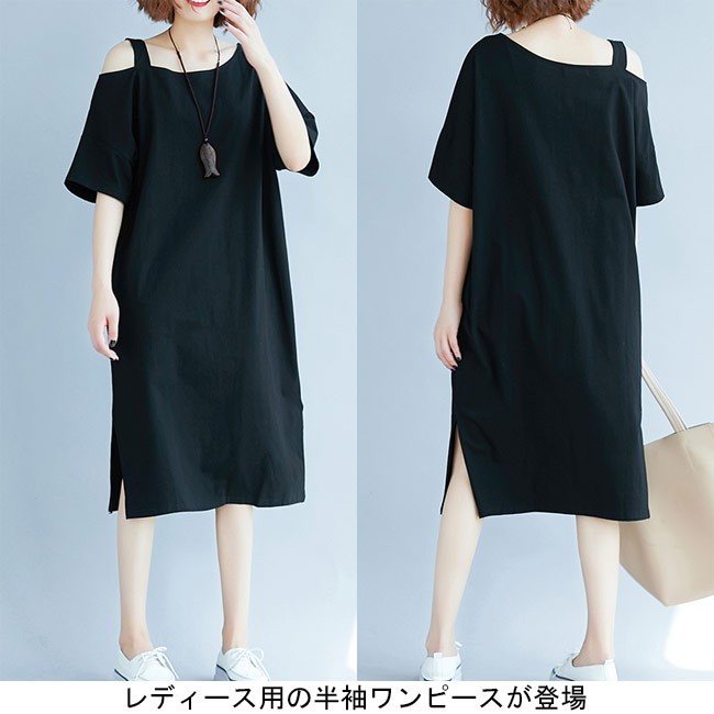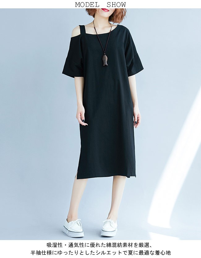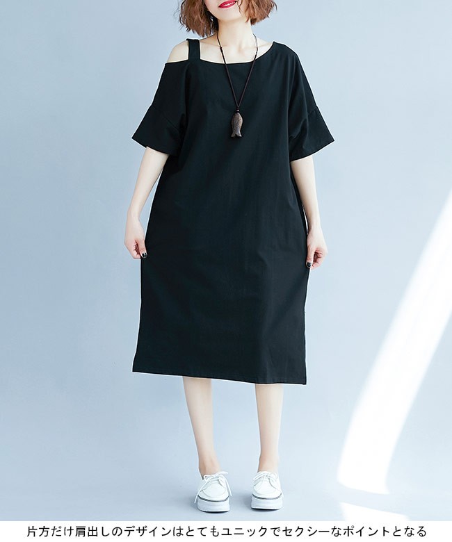 レディース ワンピース オフショルダー 五分丈袖 ゆったり 女性用 半袖ワンピース 肩出し 膝丈 体型カバー セクシー 無地 夏物 薄手レディース用の半袖ワンピースが登場吸湿性・通気性に優れた綿混紡素材を厳選、半袖仕様にゆったりとしたシルエットで夏に最適な着心地片方だけ肩出しのデザインはとてもユニックでセクシーなポイントとなるシンプルなデザインに立体的なカッティングでカジュアルなファンションスタイルを演出大きめのサイズ感で幅広い体型を対応でき、着やせ効果も効く一枚カラー:写真色素材 綿混紡サイズ(cm) XL 2XL 3XLXL バスト108 総丈982XL バスト118 総丈993XL バスト128 総丈100ご注意:※サイズは平置きサイズです。素人採寸ですので、若干の誤差がございます、ご了承ください。