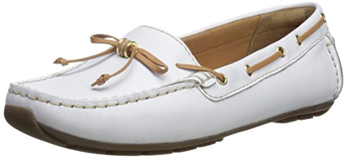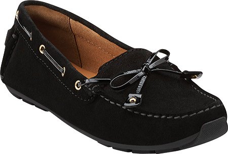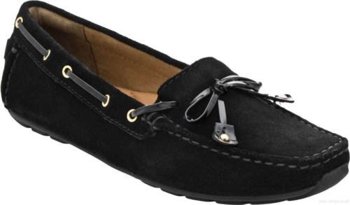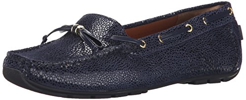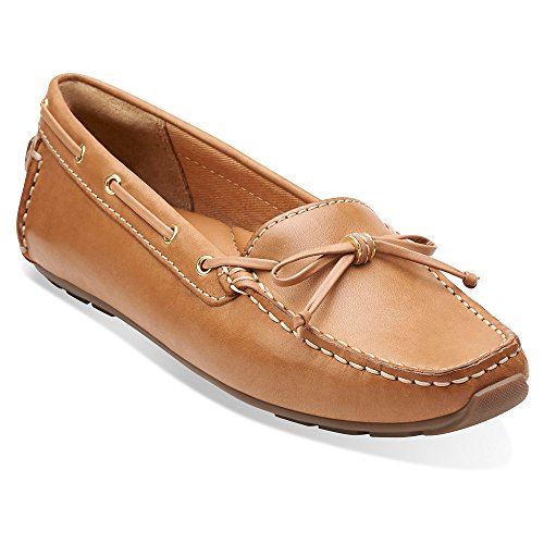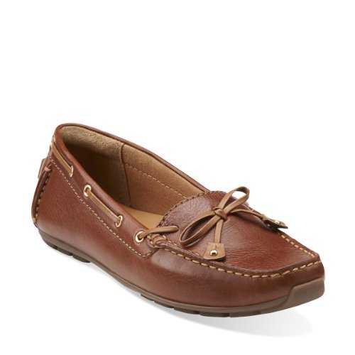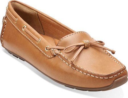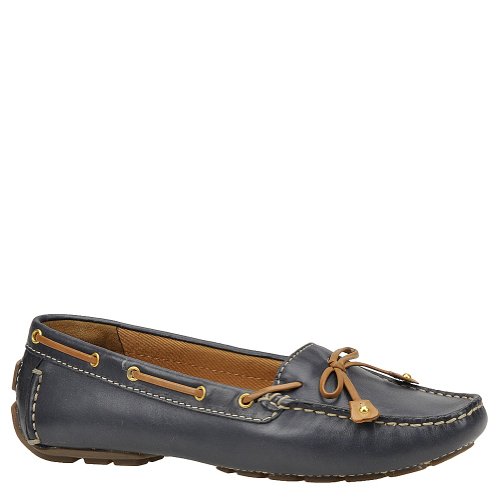 Navy leather moccasin flats from ClarksÀ Artisan that are perfect for wearing on your day off. Tan leather ties and metallic eyelets add a nautical edge, while a soft textile lining and OrtholiteÀ footbed means that these slip-ons are ideal for wearing barefoot. Wear with shorts or capris for maritime-inspired styling.Feature