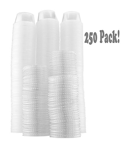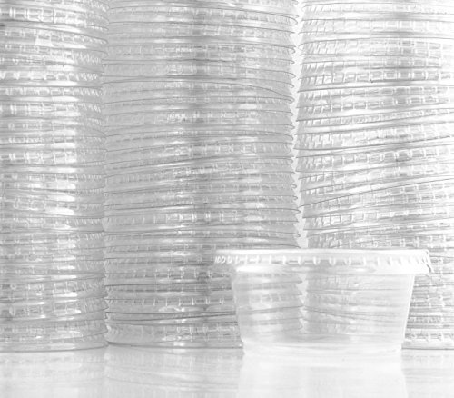 Studio : Cornucopia Brands Publisher : Cornucopia Brands Product Description Our 2oz (1/4 cup) portion cups are very convenient. They have snap-tight lids are great for on the go. Since these are transparent, it is easy to see your contents. Single size servings are so expensive to buy, so why not make your own? Use for: * Condiments, dips dressing for packed lunches to go * Portion control for diet health * Candy, snacks, shot size puddings jello * Sauces dressings, single-serve portions * Medicines * Toddler baby food size * Arts crafts: Paint or pigment storage or for DIY Slime * Party favors or samples * Alternative to bento boxes * Occupational therapy / fine motor skills learning * Great for deli, restaurants, catering, home kitchen, schools, VBS, day camps. Though containers are disposable, they can be washed for reuse several times. They are NOT dishwasher safe. Please hand wash. Cup Material: #5 Recyclable PP Polypropylene Plastic (like yogurt containers butter spread containers). Lid: #1 Recyclable PET Polyethylene plastic (like water bottles). Both #1 #5 are BPA-free.Size: 2-oz capacity = 1/4 cup = 160 ml. Container is 1.25" tall with lid 2" wide at base tapering up to 2.5" diameter at lid.Quantity: 250 2oz cups 250 snap-tight lids.Q A: Why are the lids a different kind of plastic from the cup?#5 plastic is sturdier for a strong cup, but #1 plastic is more flexible for a well fitting lid. Are these leakproof?We did several leak tests on this product and it passed with flying colors. We provide no guarantees for when your child sits on her lunchbag. Are the lids easy to open close?Haven't had a 5-year-old try them yet, but I found them very quick easy to handle. 0 |