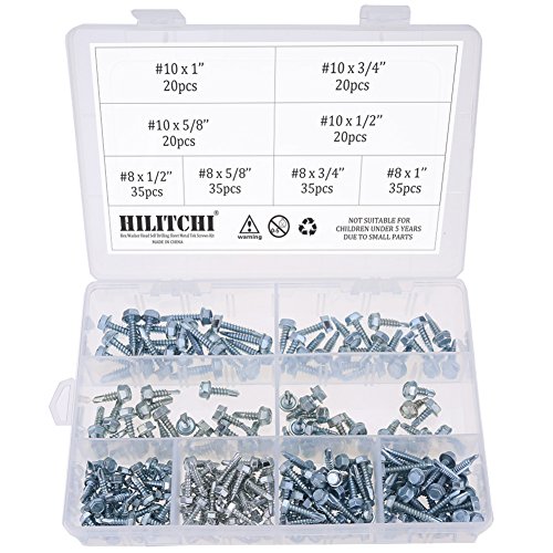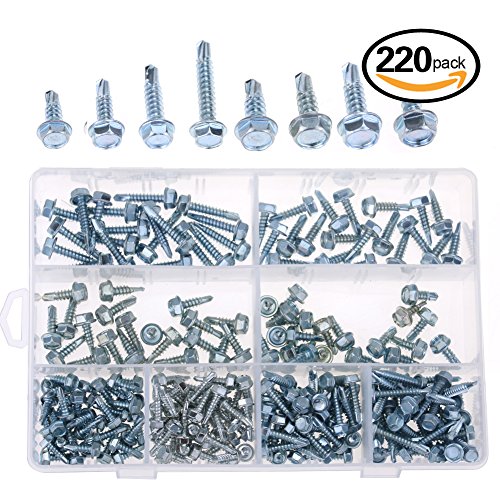 Hilitchi 220-Pieces Zinc Plated Hex Washer Head Self Drilling Sheet Metal Tek Screws Assortment Kit