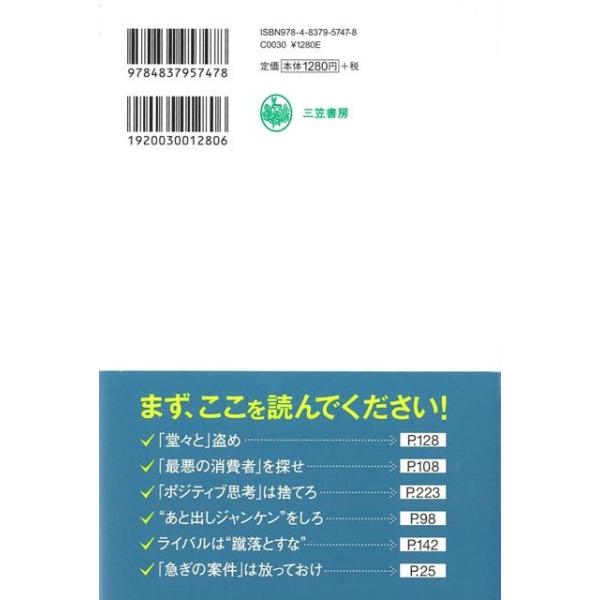 【商品説明】 定価(税込み):1,382円 値引き:10% OFF 当たり前のことやいわれたことをただ愚直にこなすだけではなく、「自分の頭で考えて先を読み、ビジネスをする人」だけが、チャンスをつかむことができるのだ。起業家から管理職、新入社員まで、どのレベルのビジネスマンにも当てはまる事例で学ぶ成功ルール。 バーゲンブック 新品 特価 格安 ビジネス 経済 自己啓発 自己 啓発 社員 | |