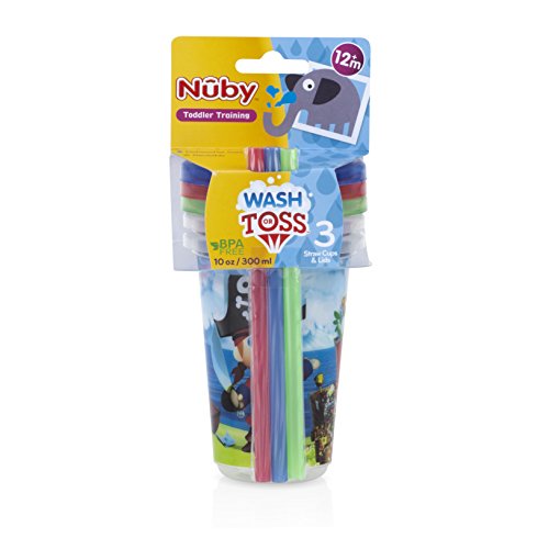 -. Title : Nuby Stackable P.R.Inted Wash or Toss Straw Cups, 3 Count