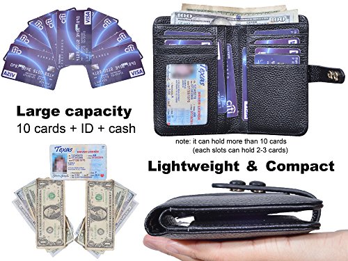 Beurlike - LET'S BE YOUR LIKE! Beurlike don't just sell products, we're a team that committed to make life easier and better. Excellent Product Quality and Customer Satisfaction are always our priority. This is the business principle that we set out from the very beginning, it guides our dailly work from the first day, and this will never change. Beurlike Team Beurlike Women's RFID Blocking Genuine Leather Bifold Card Wallet with Buckle This is a practical and elegant leather wallet for daily use. Adjustable Snap Closure Just like a belt in the waist creating a perfect split ratio, the snap band(with 2 inner metal buckles) adds femininity to the wallet, also makes it easy to adjust tightness based on your needs. Not only this wallet make you collect all your essentials, but also in a neat and elegant way. Cowhide Genuine Leather High quality natural leather made with exquisite workmanship, soft, durable and scratch resistant. Most importantly, The longer the use, the brighter the textured luster is (Based on the premise of appropriate maintenance). RFID Security Blocks FRID signals and protects information on chips from unauthorized scanning. An ideal protector for your personal information, such as credit cards, debit cards, driver licenses, banking information, and any other RFID cards. Large Capacity 1 ID Window 2 Cash Compartments 10 card slots. Extremely practical and functional for daily use, plenty of room in this wallet to easily hold all your essentials. PACKAGE CONTENT: 1 x Women's Leather Card Wallet. NOTES: 1. Please allow 1-2 cm differences due to manual measurement, thanks. 2. Item color displayed in photos may be showing slightly different on your computer monitor since monitors are not calibrated same. 0 |