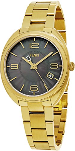 -. Title : Momento Women's 34mm Mother-of-Pearl Black Face Yellow Gold Stainless Steel Swiss Watch Women F218431500