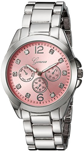 -. Title : Geneva Women's GV/1009PKSB Crystal Accented Silver-Tone Bracelet Watch