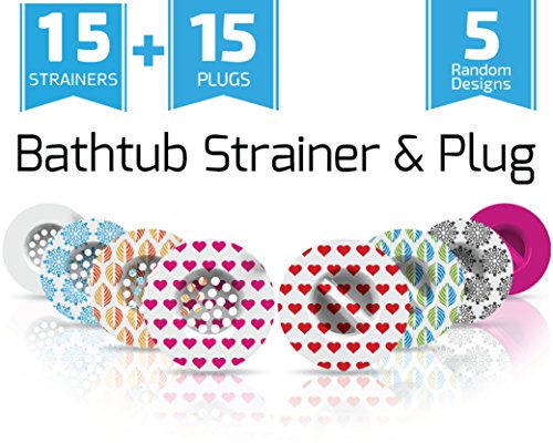 ✓ INCLUDED IN THAT BATH TUB JUMBO PACK - 15 Bath Tub Multi-Use Strainers + 15 Bath Tub Plugs (5 Designs). Each of them will last you for 1 day to 4 weeks, depending on utilization. 1.5” Standard Diameter.