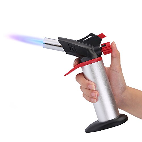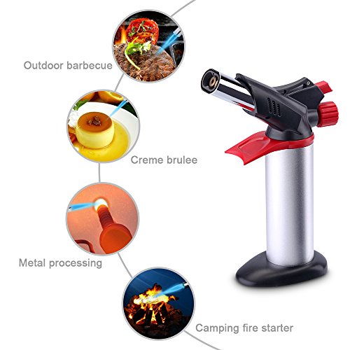 - ✔ Ergonomic Design and Sturdy Construction - UTEN professional butane torch is designed with an innovative body that provides a comfortable grip to reduce fatigue and strain on the wrist with an easy one click trigger release. It builds with a heavy duty metal body for long lasting use. It burns up to 40 minutes continuously, depending on flame size.