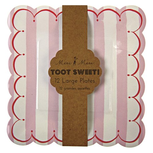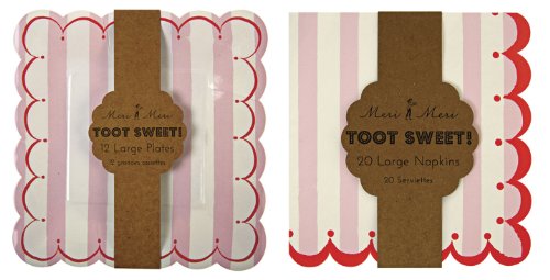 Meri Meri Large Pink Stripe Toot Sweet Plates and Napkins (12 plates and 20 napkins)