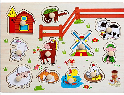 -. Title : WELLSKEY (Set of 3) Wooden Peg Puzzles (Farm, Vegetables, Fruits)