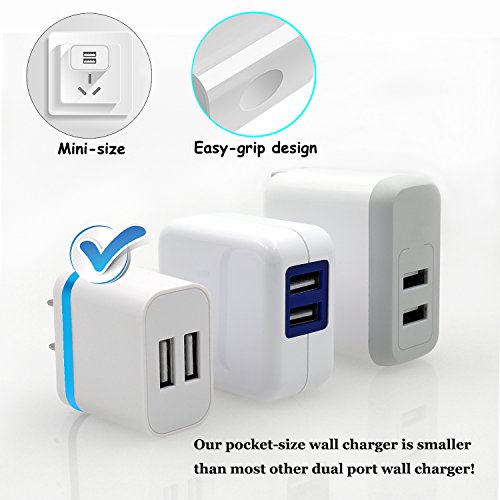Small, Lightweight and travel-ready: The pocket-size wall charger is smaller than most other dual port wall charger. It is only 28g(less than 1/4 iPhone 6 weight). All above make it very easy for you to take it out for travel or outdoor activities.