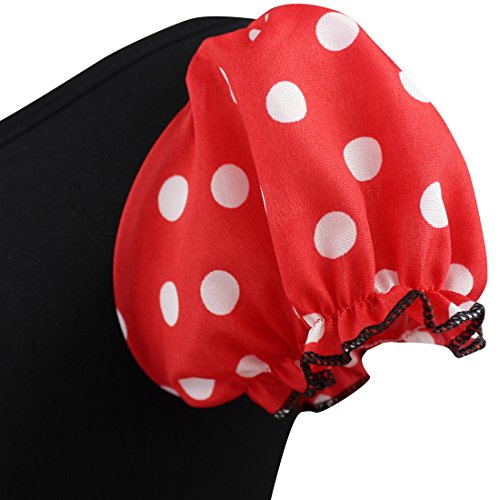-. Feature : Set Include: 1pc Dress, 1pc Headband / Girls elastic polka dots dancewear paired with headband / Round neckline, ruched shoulder and cap sleeves / Top pleated polka dots front with attached mesh, ribbon waist belt ties back / For ballet dance, stage performance or parties, Halloween costume and so on