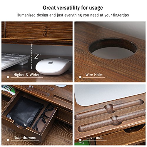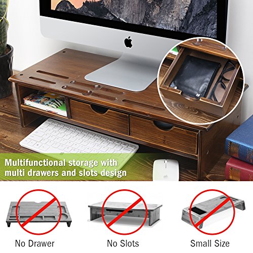 ERGONOMIC HEIGHT: Elevates the monitor to the needed viewing height, improving your posture and raising your screen to perfect eye level to relieve your neck pain in some way.