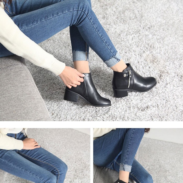 商品名:ショートブーツ レディース チャンキーヒール 太ヒール 2017 秋冬 ファッション 靴 婦人靴