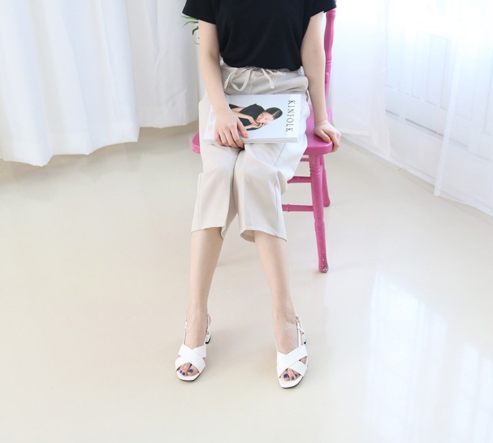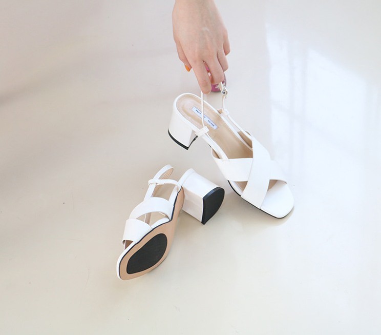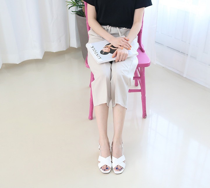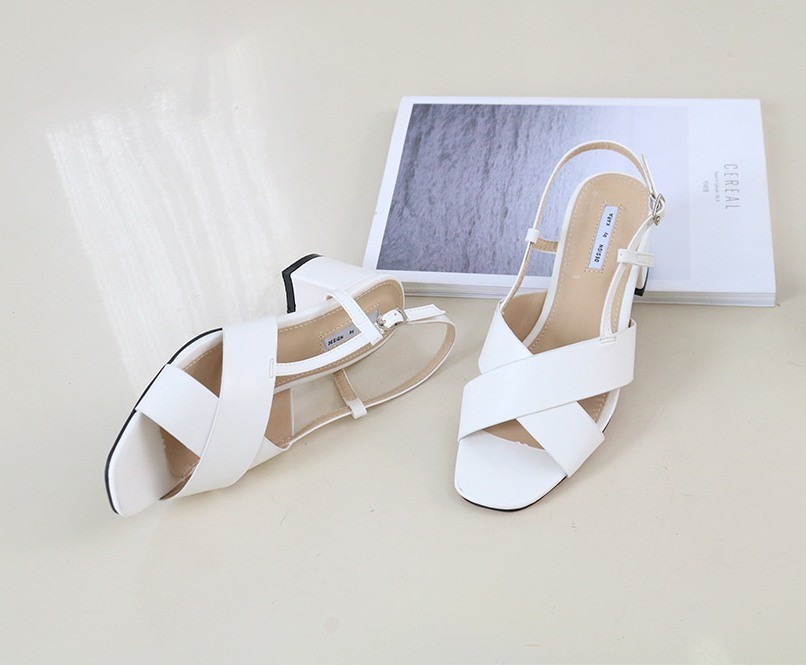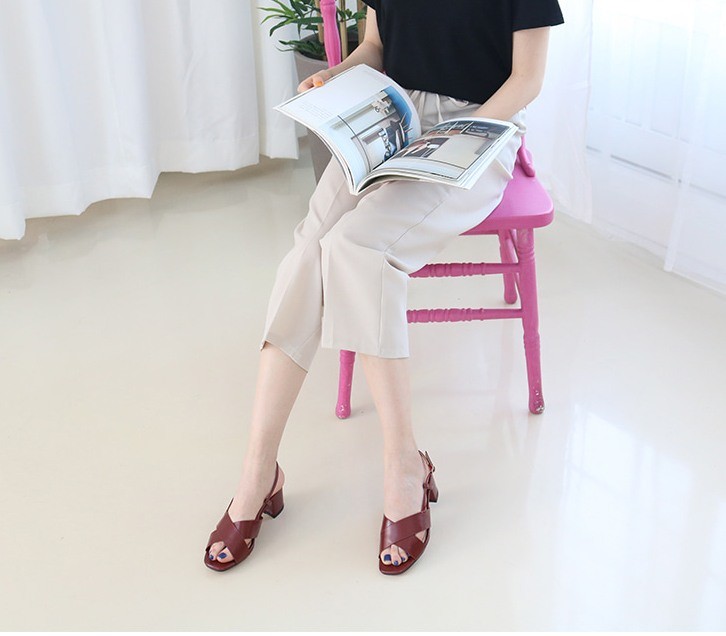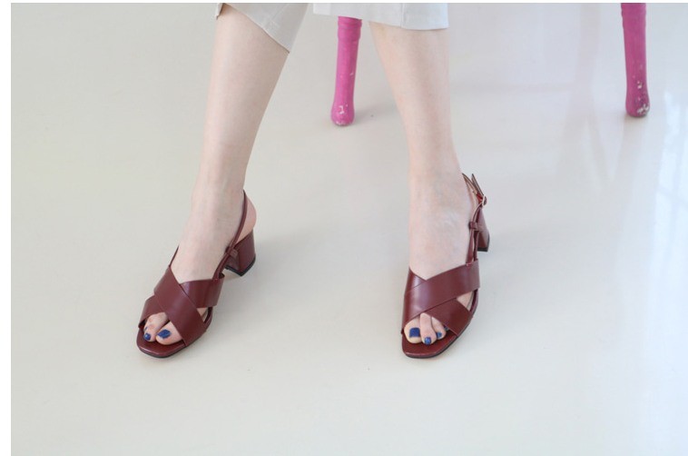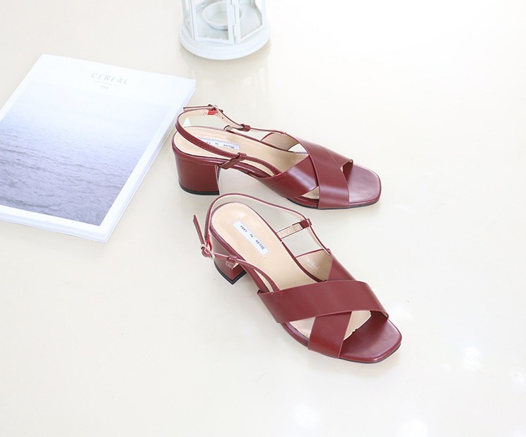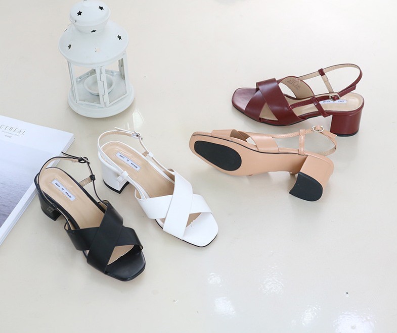 商品名:サンダル レディース 太ヒール チャンキーヒール クロスストラップ スリングバック 2018 夏 ファッション 靴 婦人靴
