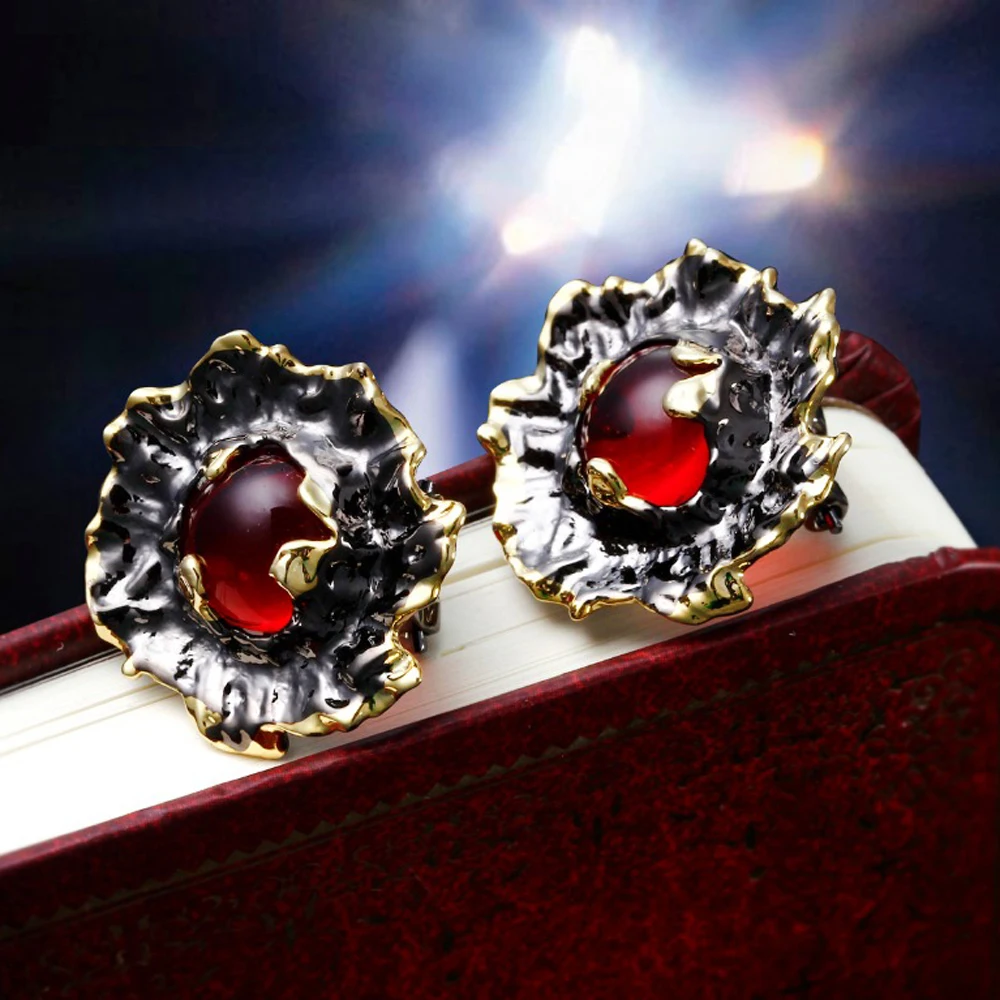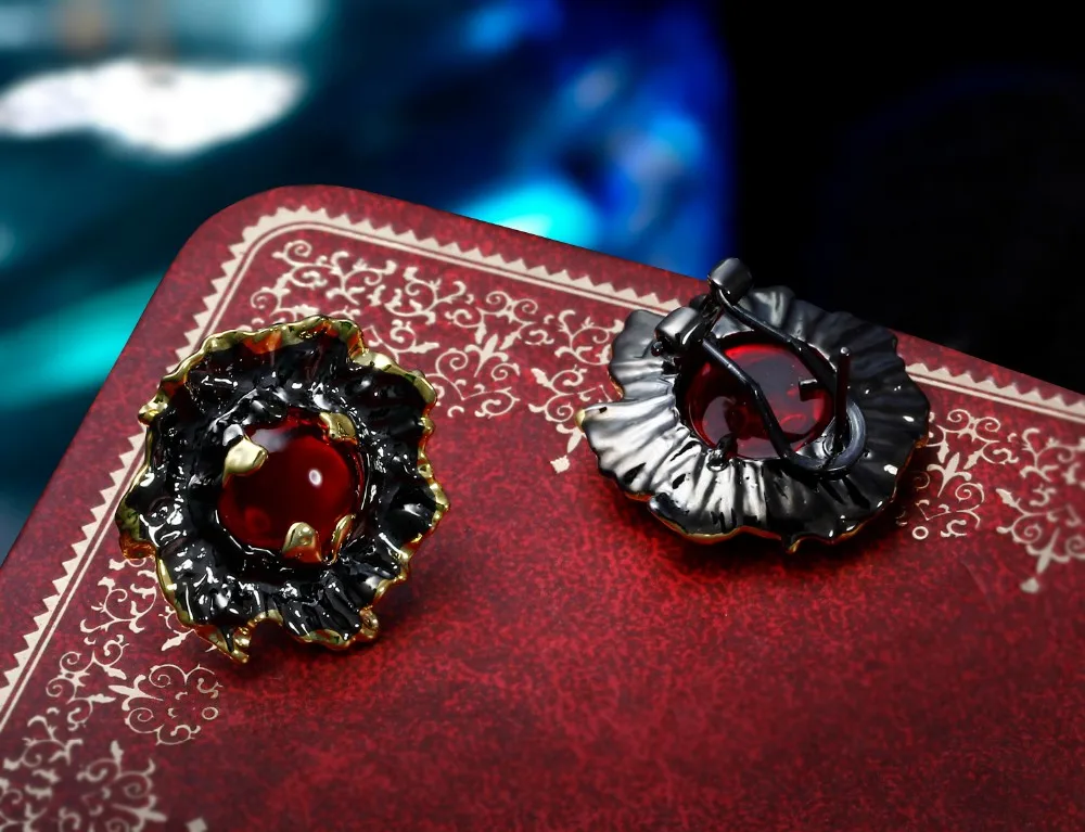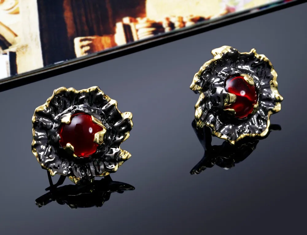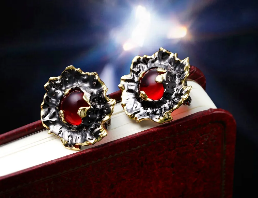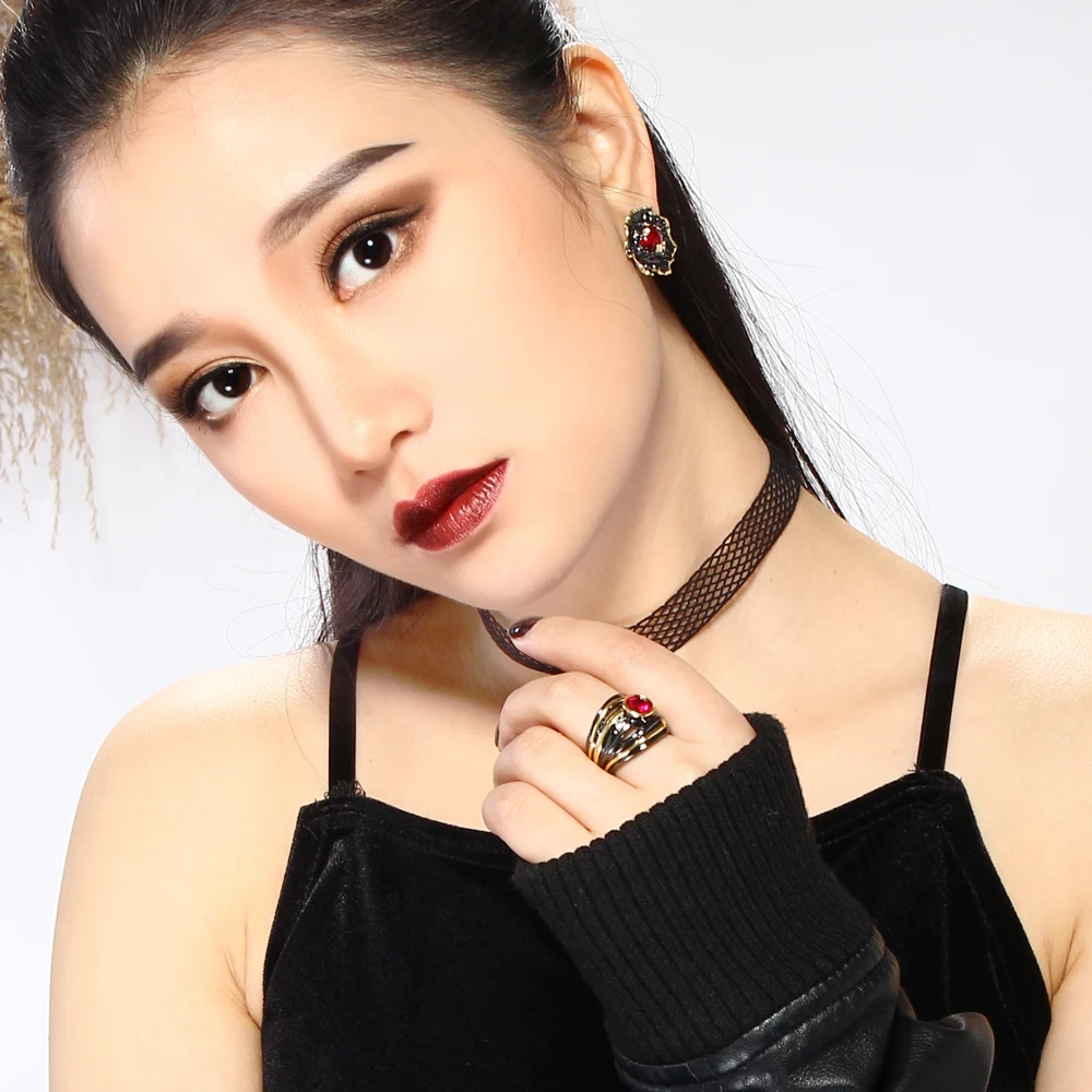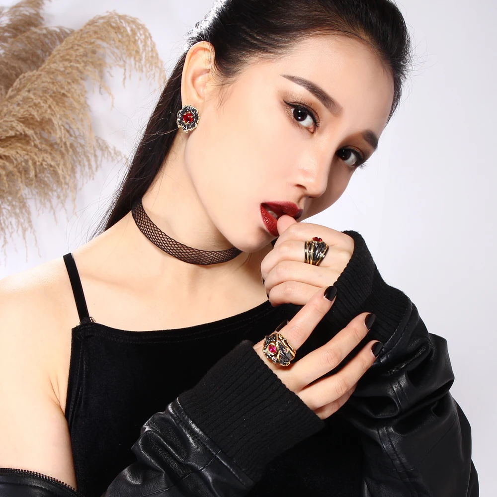 Color :Black and gold plated with red stones