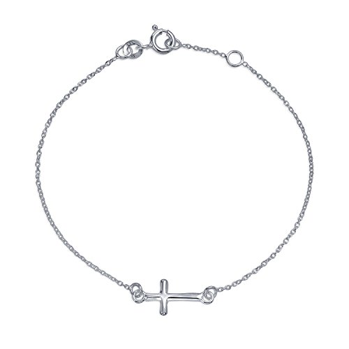 -. Title : Bling Jewelry Tiny Sideways Cross Charm Chain Bracelet Sterling Silver 7in