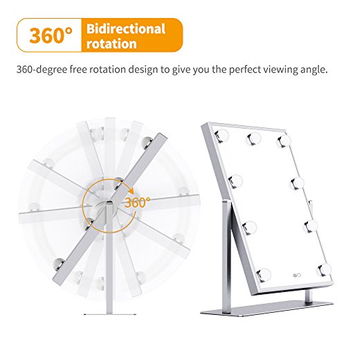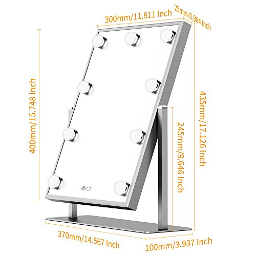 BEAUTME Hollywood Makeup Vanity Mirror,Hollywood vanity Mirror with Light Table tops Lighted Mirror with Dimmer, LED Illuminated Cosmetic Mirror with LED Dimmable Bulbs,Lighting Mirrors (silver)