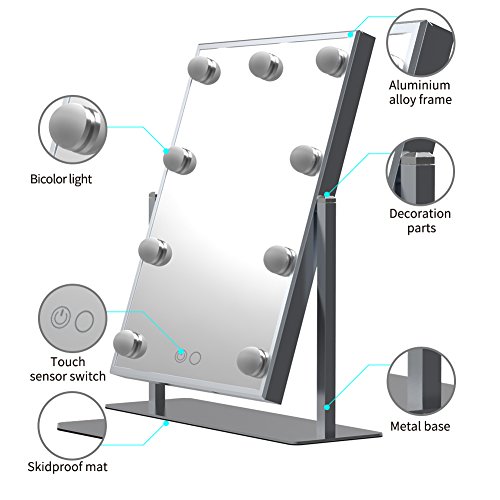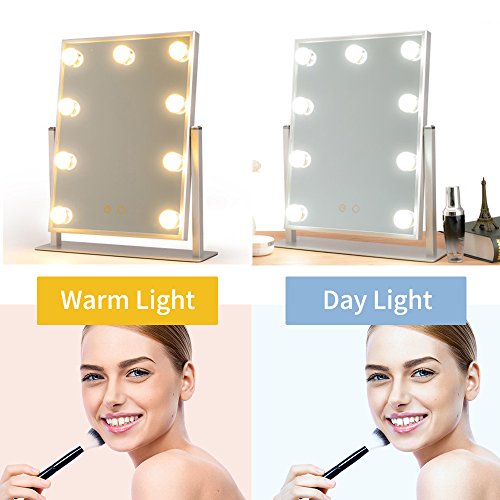 - ★9 LED bulbs lights,Two kind color of light,Touch funciton.two color of the light can be converted to each other. touch the button to adjust the brightness.The lights are nice and bright with no glare and it can be touched,Rest assured to enjoy your make-up trip.