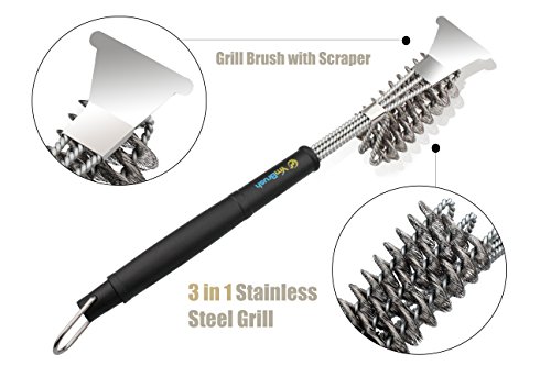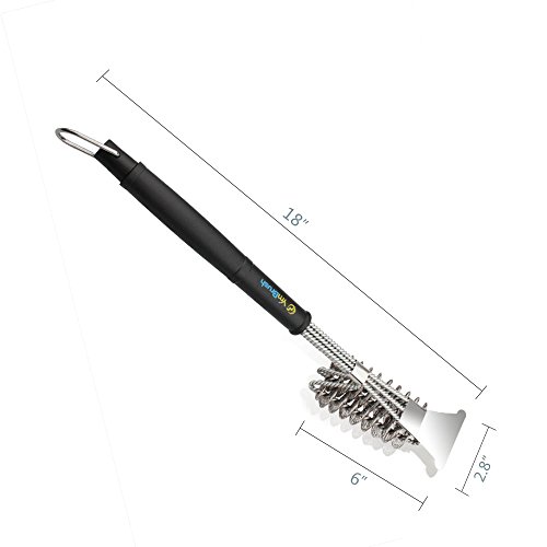 JiazuGo Grill Brush With Scraper- Rust Resistant Stainless Steel Barbecue Grill Cleaner,18'' Triple Scrubber and Scraper.