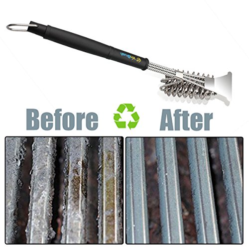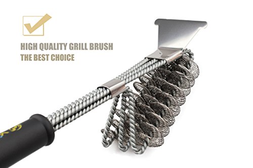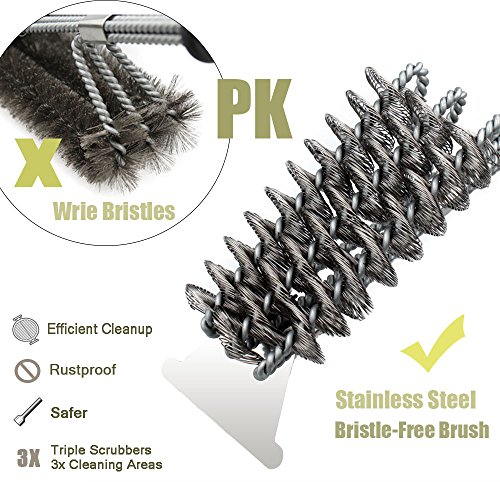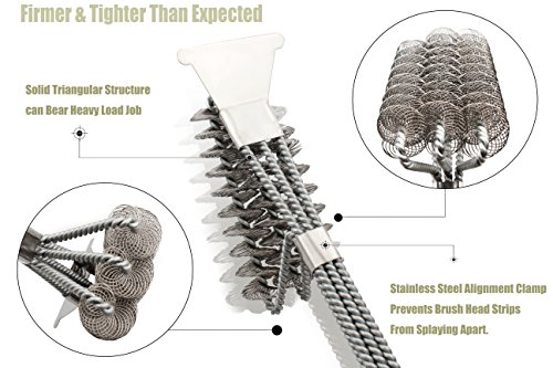 Triple Scrubber:3 in 1 Unique brushes design that made with triple stainless steel twisted wires.It can help you clean your grill brush more effectively with 360 degrees.