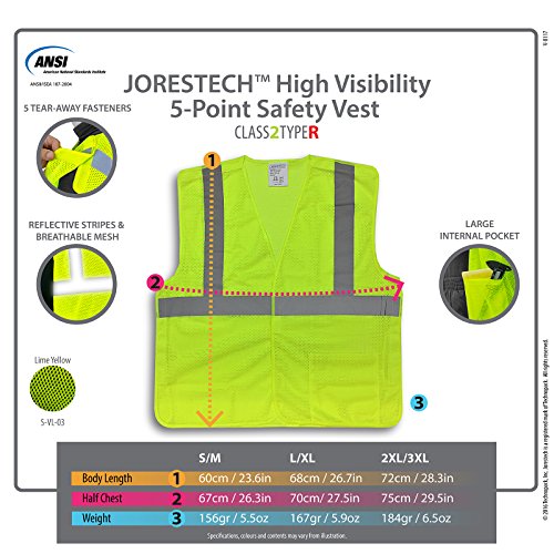 JORESTECH Safety Mesh Vest, ANSI/ISEA 107-2015 Class 2 Type R, Compliant with Internal Convenience Pocket (Large to XL)