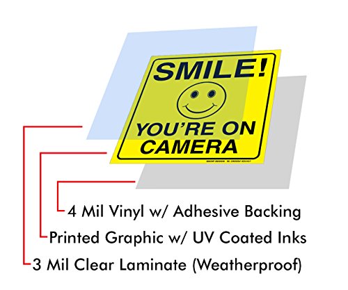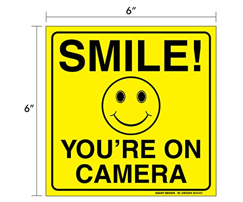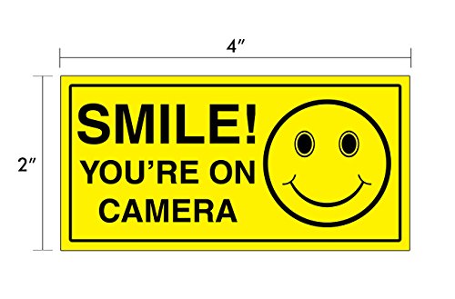 (8 Pack) SMILE YOU'RE ON CAMERA BUNDLE (4) 6"x6" & (4) 2"x4" Self Adhesive Vinyl Stickers - HEAVY DUTY - 4 Mil w/ 3mil Lamination For Ultimate Protection & Durability - UV Protected & Weatherproof