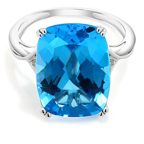 -. Title : 11.70 Ct 16X12mm Emerald Cut Swiss Blue Topaz 10K White Gold Ring With Accent Diamond