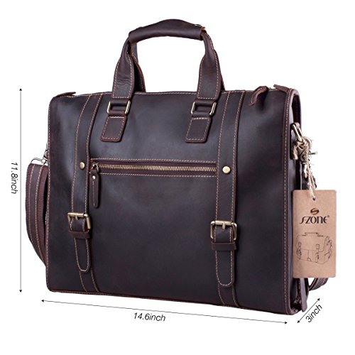 -. Title : S-ZONE Classics Brand Leather Vintage Leather Men's Briefcase Handbag Messenger Bag