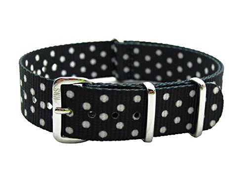 -. Title : HNS 18mm Double Graphic White Dots Black BG Ballistic Nylon Watch Strap Polished Buckle NT170