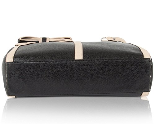 You'll love the shape and easy versatility of the Jessica Scarlett Shoulder Tote Handbag. Bag Features slightly textured synthetic leather exterior with oversized bow detail, Top magnetic closure, Fully Lined Interior with Center 2 slip and on zip pocket, It give you plenty of room and a bold look.