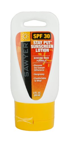 Sawyer Stay Put sunscreens bond to the skin in a unique way that give you great, comfortable protection from harmful UV rays. Think of it as a "breathable matrix". While most sunscreens hold the lotion in the top two layers of skin, Stay Put sunscreen also "bonds" the sunray absorbing agents deeper into the skin. By spreading the same volume of lotion over a larger cubic area of skin, the result is less sunscreen lotion per area of skin, thus a more comfortable feel. The deeper the lotion is, the less likely to wash off and rub off than surface sunscreens. Sawyer Stay Put sunscreens are enriched with Aloe Vera and Vitamins. They are non-greasy, PABA and fragrance free long-lasting sunscreen.Feature