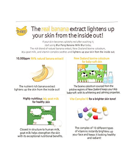 (3) The real banana extract lightens up your skin from the inside : If your skin becomes splotchy red after washing it, start using Blur Pang Banana Milk Blur today.