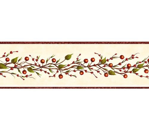 -. Title : Burgundy Beige Berry Garland Wallpaper Border