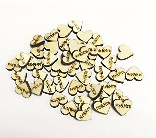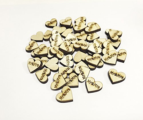 50 x2 PCS Rustic Wedding Decor Wooden Love Heart Table Scatter Decoration Crafts for Wedding Baby shower DIY Crafts,Mr and Mrs