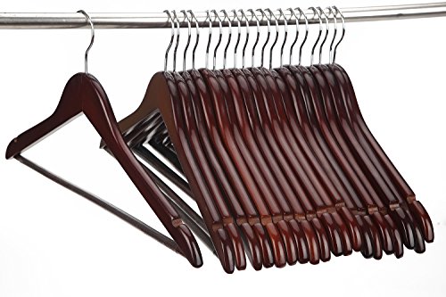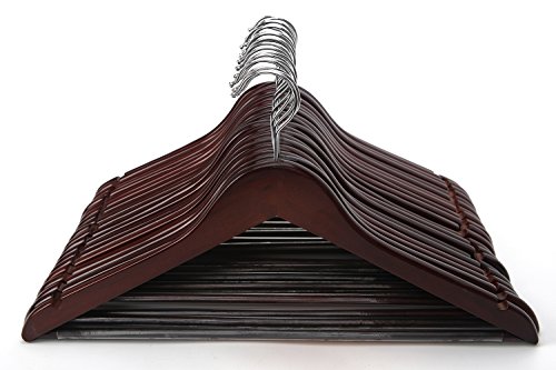 -. Title : J.S. Hanger Solid Wooden Suit Hangers Walnut Finish with Polished Chrome Hooks - 20 Pack