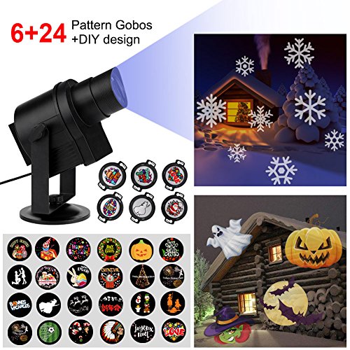Diglot LED Christmas Projector Lights 2017 New DIY LED Projector Landscape Lighting with 6+24 Pattern Gobos 360° Rotating & Anti-fading Waterproof Films for Halloween Weeding Party Home Decor