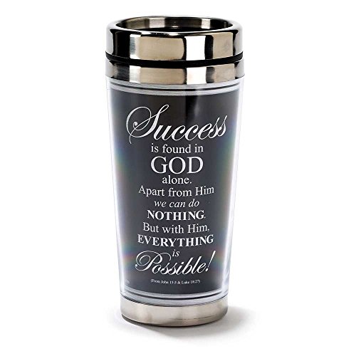 Success in God John 15:5 Black 16 Oz. Stainless Steel Insulated Travel Mug with Lid