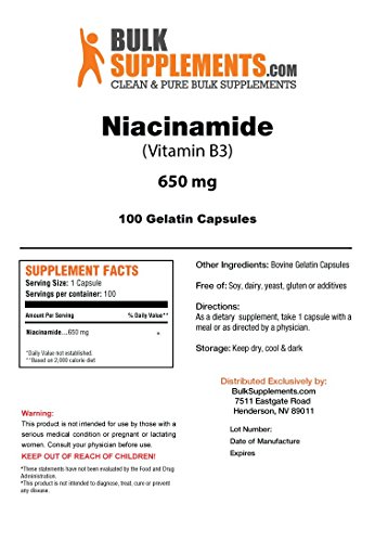 BulkSupplements Pure Vitamin B3 (Niacinamide) Capsules (100 Gelatin Capsules)