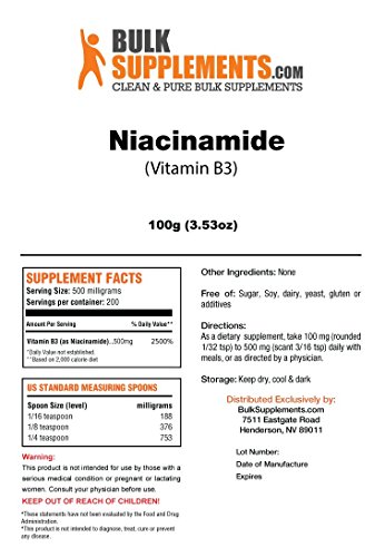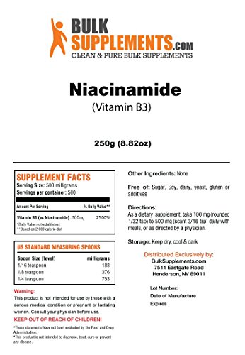 BulkSupplements Pure Vitamin B3 (Niacinamide Powder) Powder (500 grams)