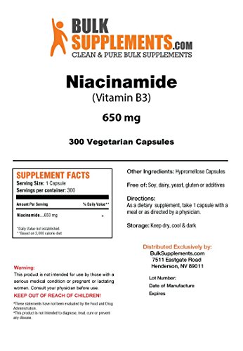 BulkSupplements Pure Vitamin B3 (Niacinamide) Capsules (300 Vegetarian Capsules)