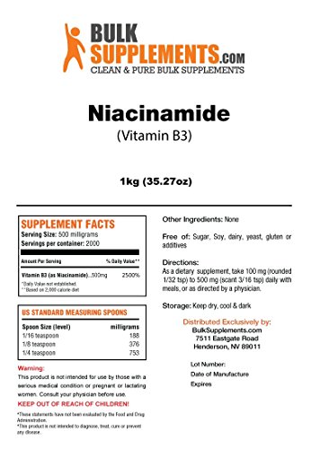 BulkSupplements Pure Vitamin B3 (Niacinamide Powder) Powder (1 Kilogram)