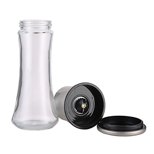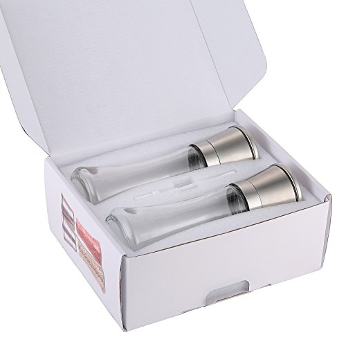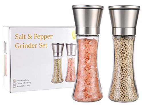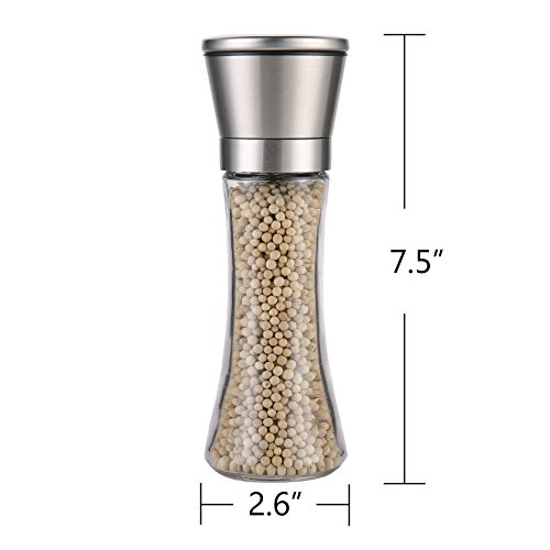 Salt and Pepper Grinder Gift Set - Best Salt and Pepper Mill - Brushed Stainless Steel Lid with Adjustable Ceramic Rotor - 6 oz - Sleek Glass Body - Great Gift!