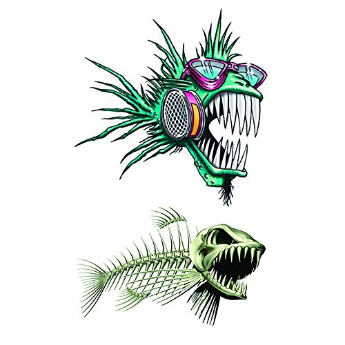 WYUEN 5 PCS Fish Skull Women Temporary Tattoo Stickers Waterproof Women Fake Hand Animal Tattoos Adult Men Body Art 9.8X6cm FA-253